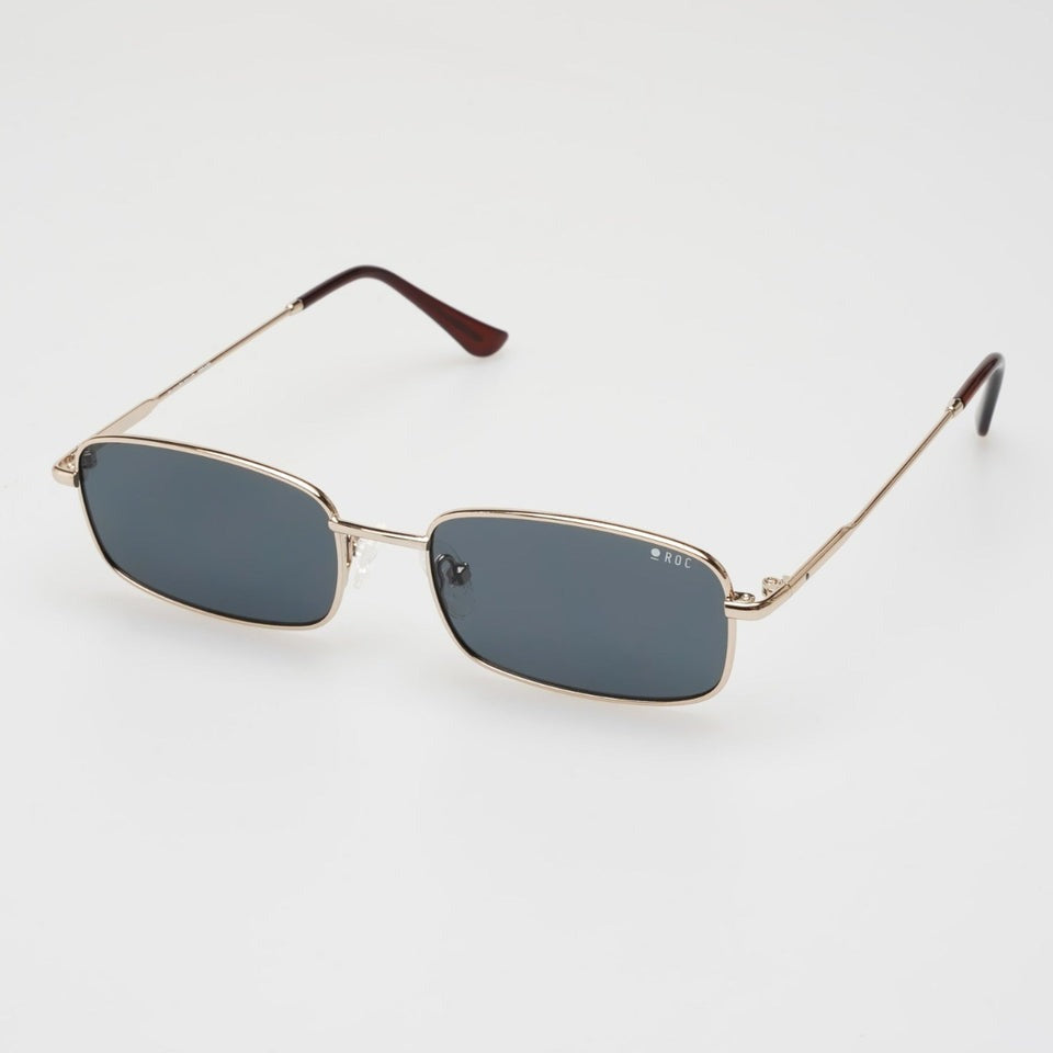 FRAME: Gold. LENS: Smoke. 100% UV Protection. Category 3