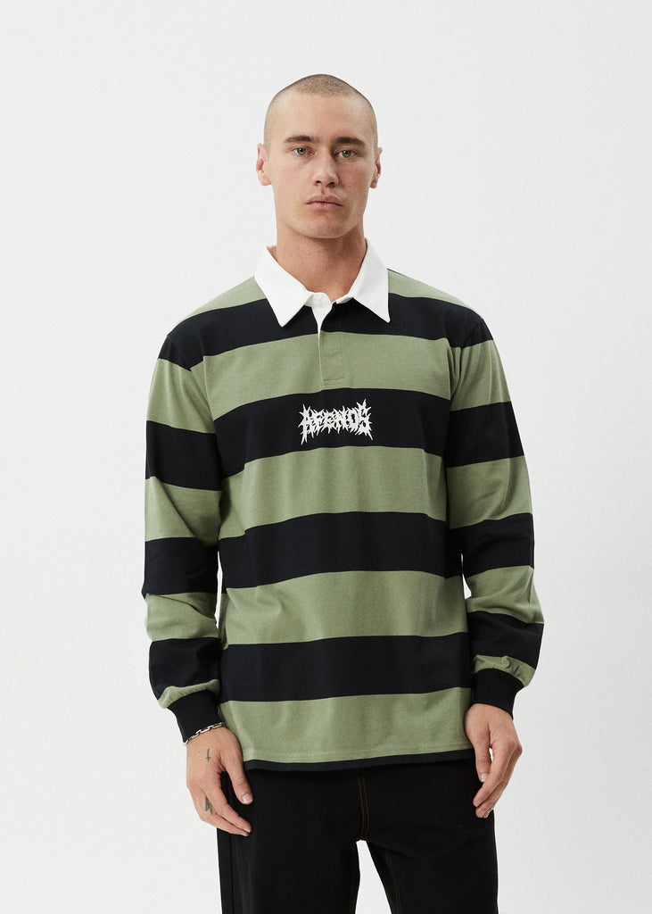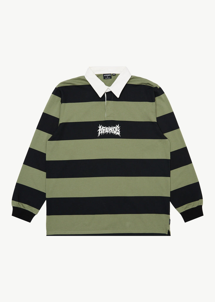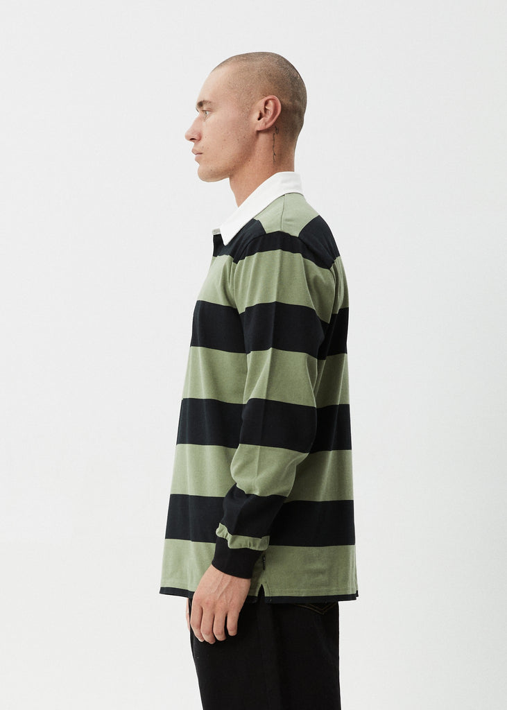 Afends Mental Rugby Long Sleeve Tee - Oil Green Was $100 Now