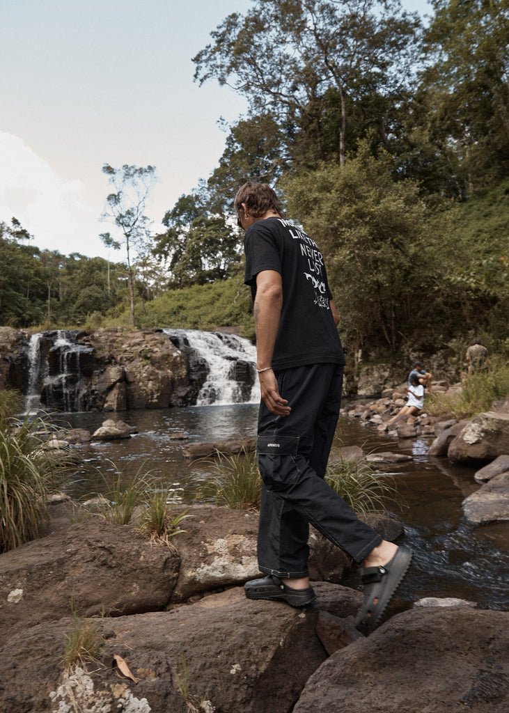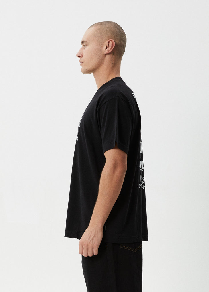 This Afends t-shirt is designed with a slightly cropped, wide fit and a lightweight hemp-cotton blend for breathable comfort. Screen-printed artwork and a ribbed neckline complete the look.