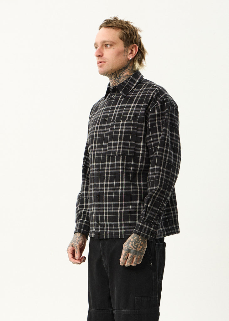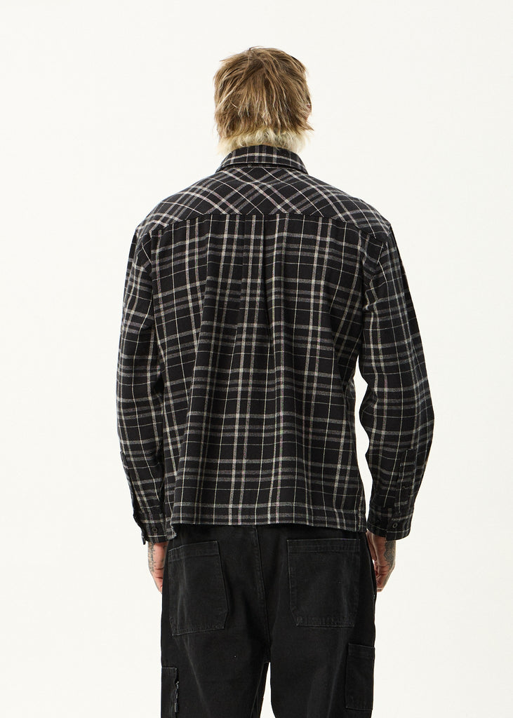 Afends Nights Recycled Flannel Long Sleeve Shirt - Black Check