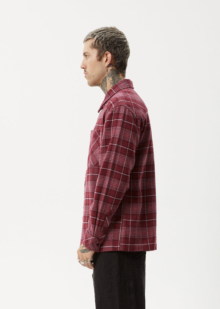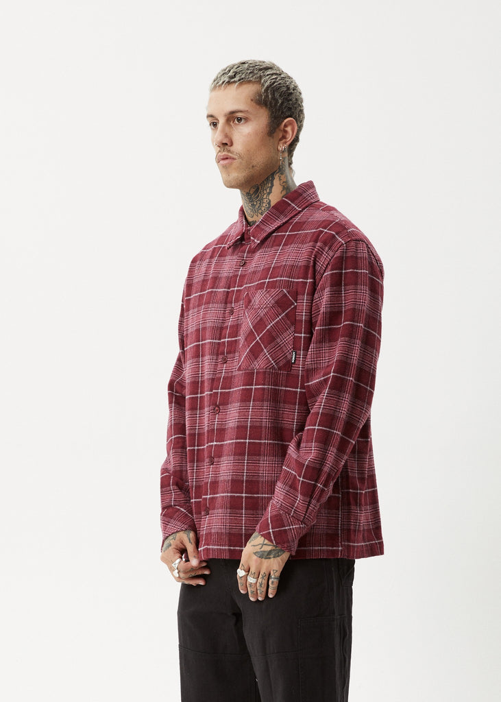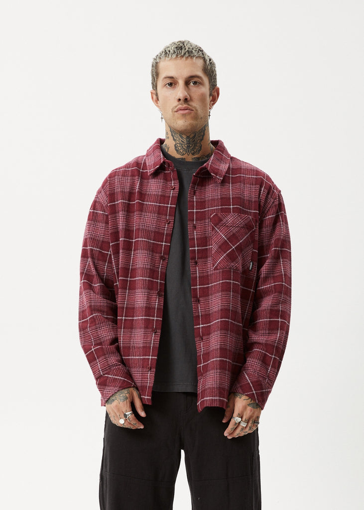 Introducing Questions, our Flannel Shirt in our Port colour-way. Experience guilt-free comfort with our eco-friendly blend of 100% recycled cotton and polyester. Button to the top and wear as is or button-down as the perfect layering piece.