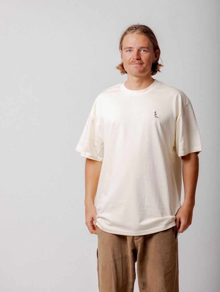 The baked goods tees are a heavy tee, made out of a heavier, warmer cotton than our usual tees. They are also a slightly larger, boxier fit. If you are unsure, we recommend going down your usual size.