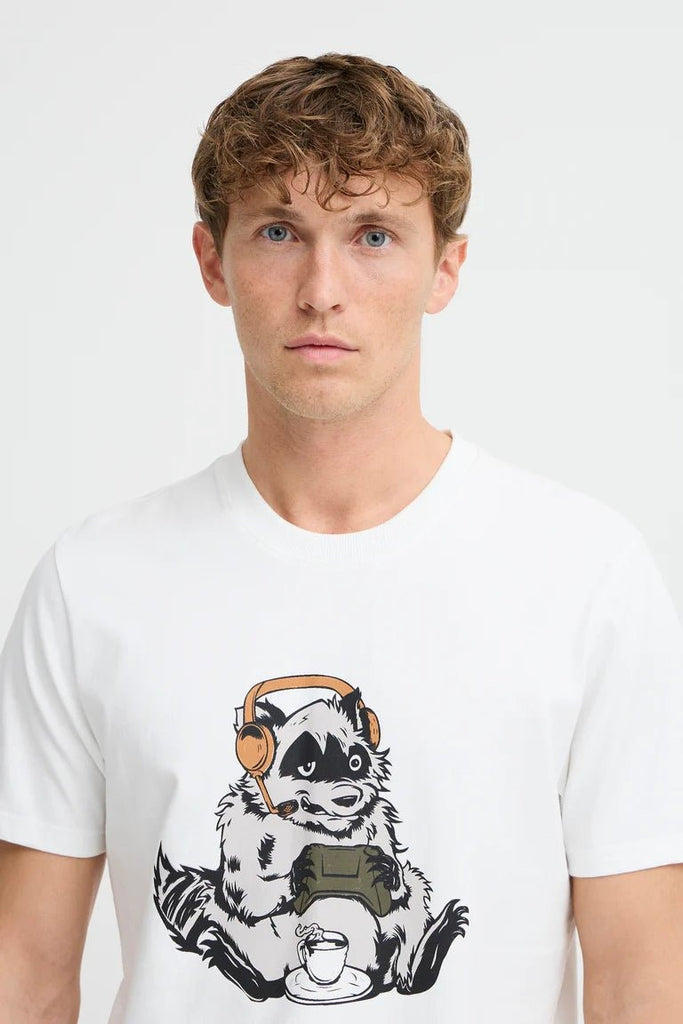 Laid-back and playful, the Blend He Javor Tee features a graphic of a raccoon sitting with a game controller. A relaxed design that’s perfect for gamers or anyone who appreciates a bit of fun in their everyday style.