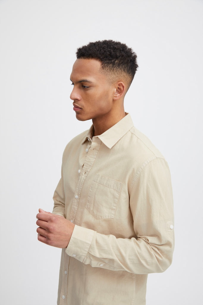 Introducing the ultimate men’s trans-seasonal shirt - featuring a classic collar, button-up front and sleeve cuffs, and a patch pocket for added style. Its relaxed fit allows for versatility - wear it as a shirt or open over a tee for a cool, casual look. 100% Cotton