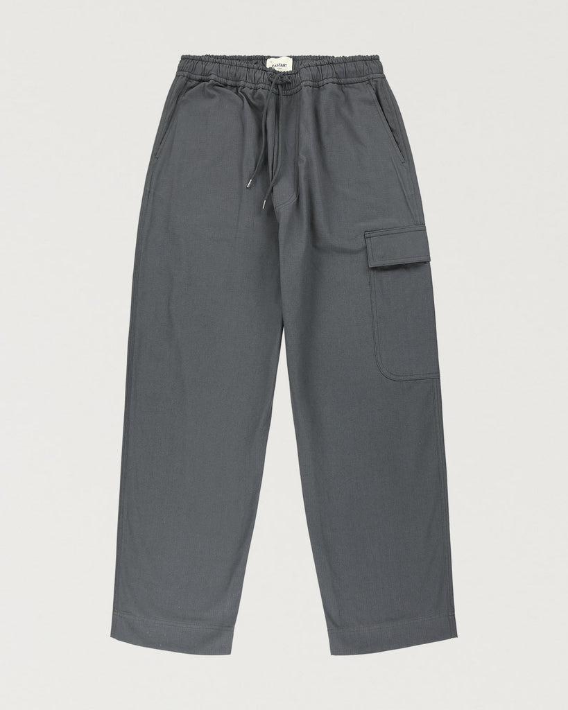 Castart's ripstop cargo trousers. With a straight, comfy fit, side pocket with snap fasteners, elastic drawstring waist, and built-to-last durability, these trousers are crafted in a small Portuguese tailoring atelier using carefully sourced Italian fabric. It's our team's favorite styling piece of the season.