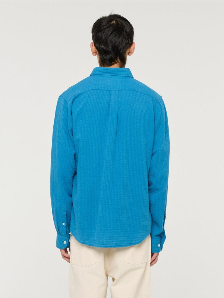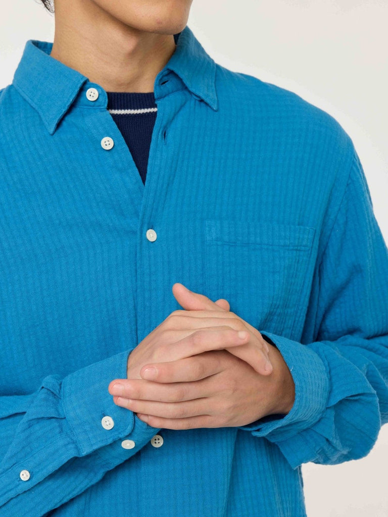 This textured button down shirt is made from bubble gauze fabric. It has a relaxed fit and single breast pocket.