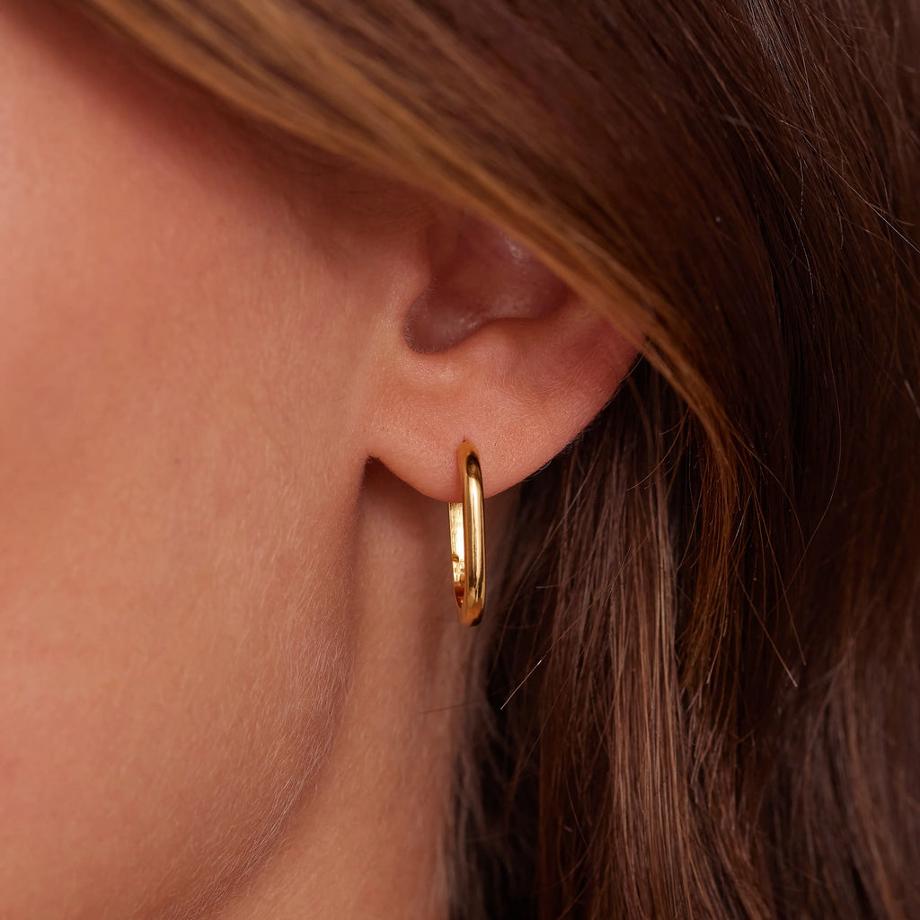 Our Polished Gold Huggies are designed to be layered and worn with our collection of earring charms.