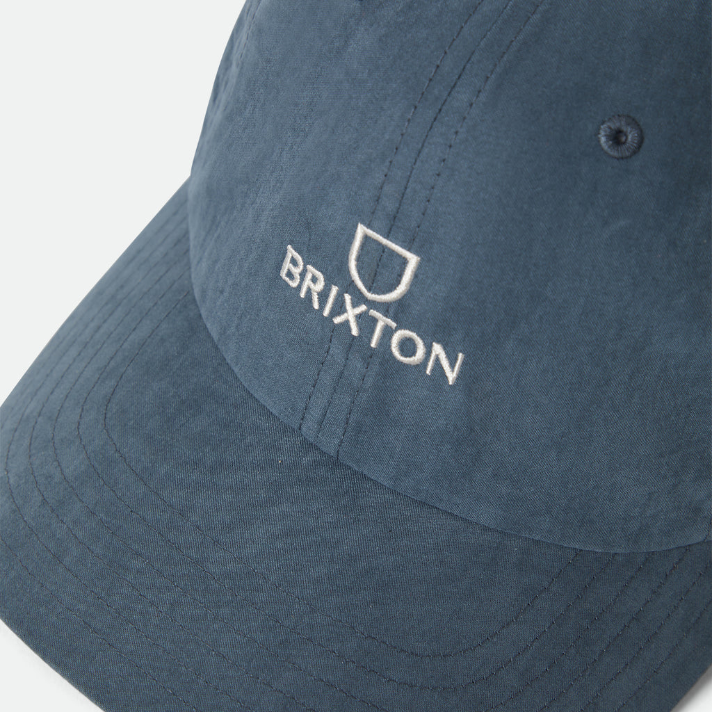 Keep it classic with a side of sustainable edge. The Alpha Snapback Cap in Blue by Brixton is a low-profile, unstructured 6-panel cap with a curved bill, made for effortless everyday wear.