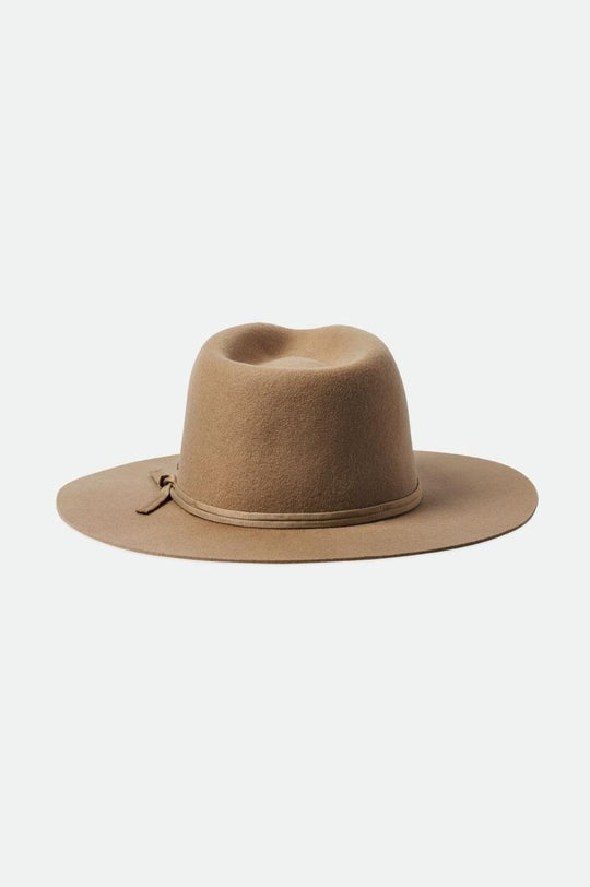 A structured wide-brim hat with a raw edge. Made from 100% Australian-sourced wool felt. Find your perfect fit with the adjustable interior sweatband. It's finished with a thin grosgrain band and a metal Brixton pin.