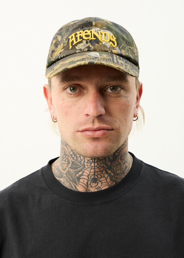 The 'Find Me' cap by Afends is designed with a classic six panel construction and adjustable snap back strap for a custom fit. Finished in a real tree camo print with a raised embroidered graphic.