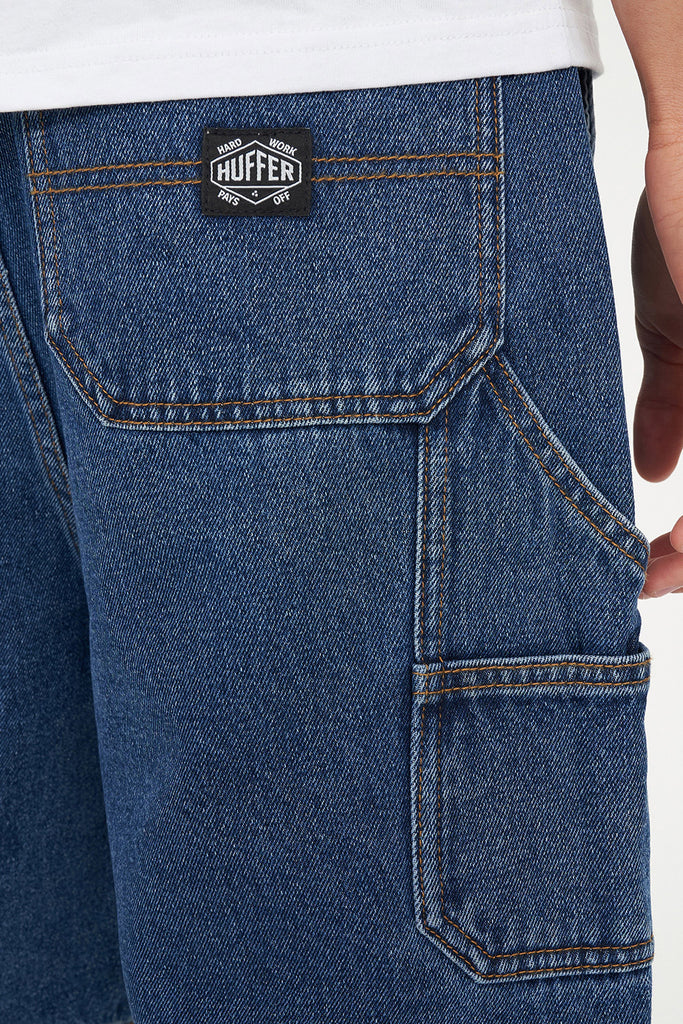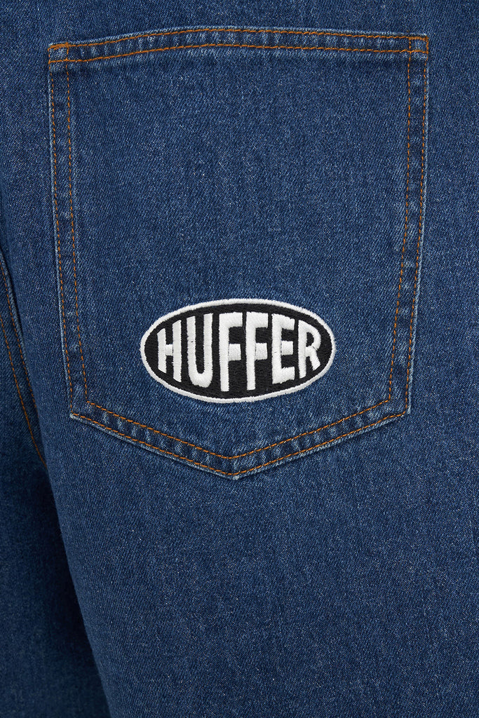 100% Cotton / 12oz denim / Relaxed streetwear fit / Fixed waistband with fly and button closure / Hammer loop / Front side angle pockets / Side leg patch pocket / Huffer branded woven label.