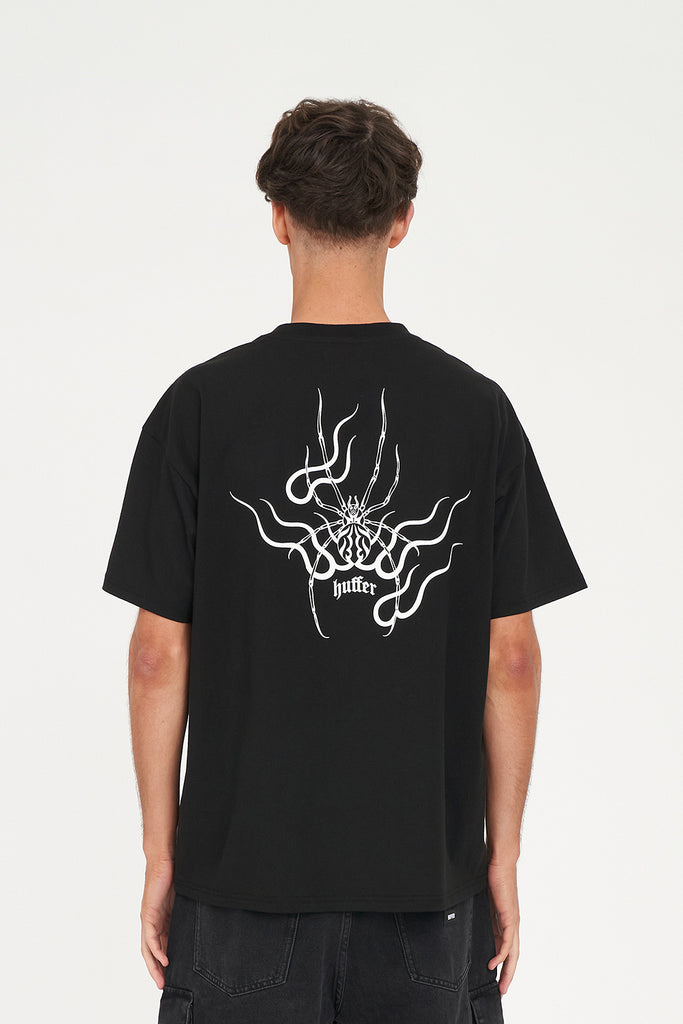 100% Cotton / 220gsm / 25mm Neck rib / Premium weight jersey / Boxy fit / Short sleeve / Huffer branded placement embroidery.