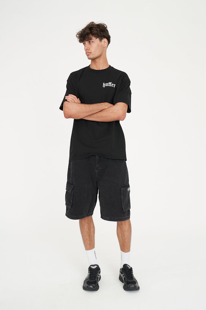 • What you need to know: 100% Cotton, 220gsm, 25mm Neck rib, Premium weight jersey, Boxy fit, Short sleeve, Huffer branded placement embroidery.