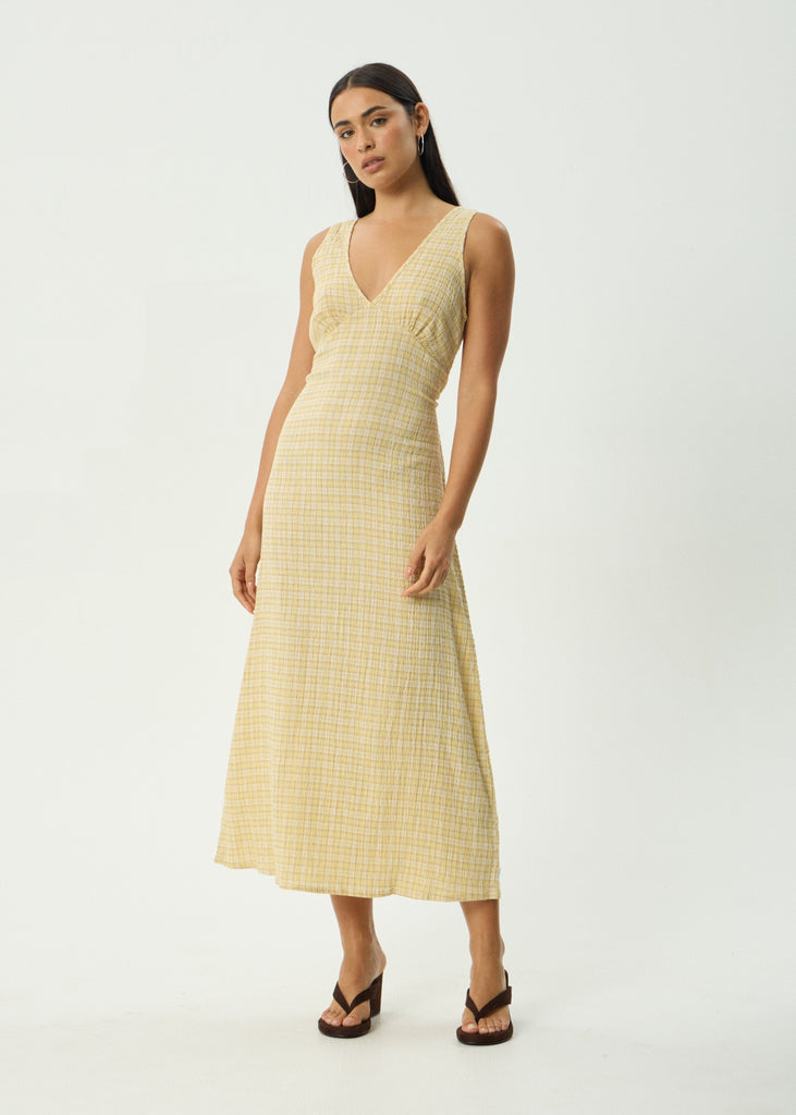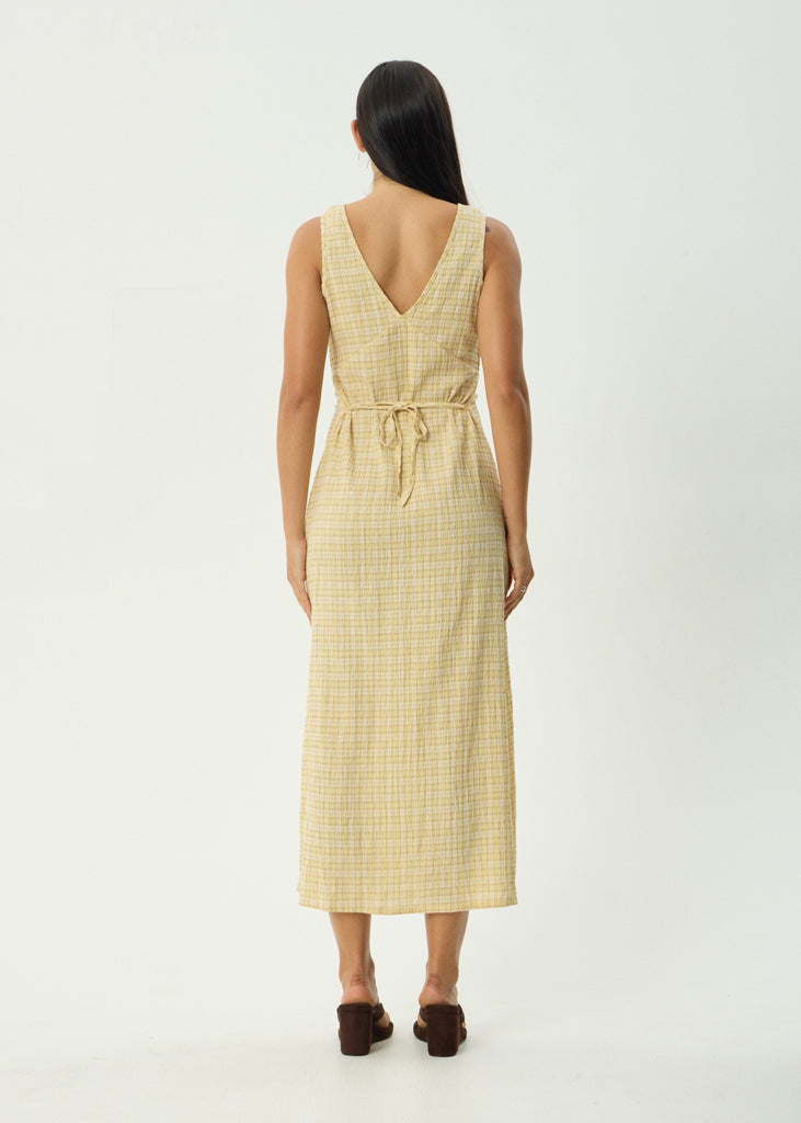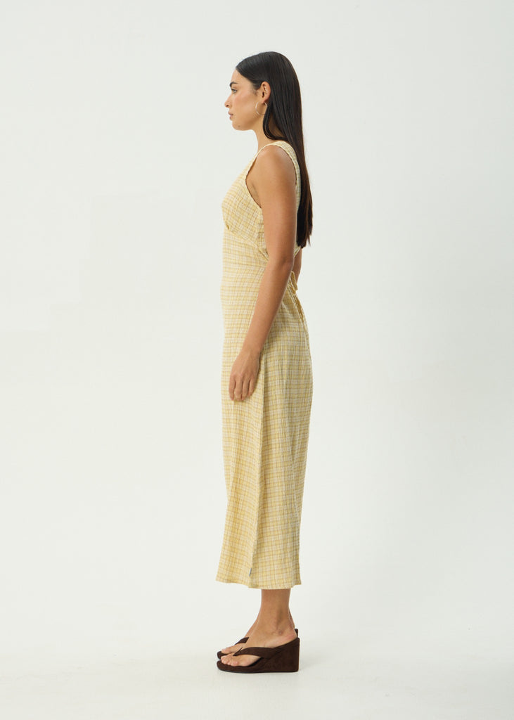 Afends Sunday Hemp Seersucker Maxi Dress - Lemon Check
