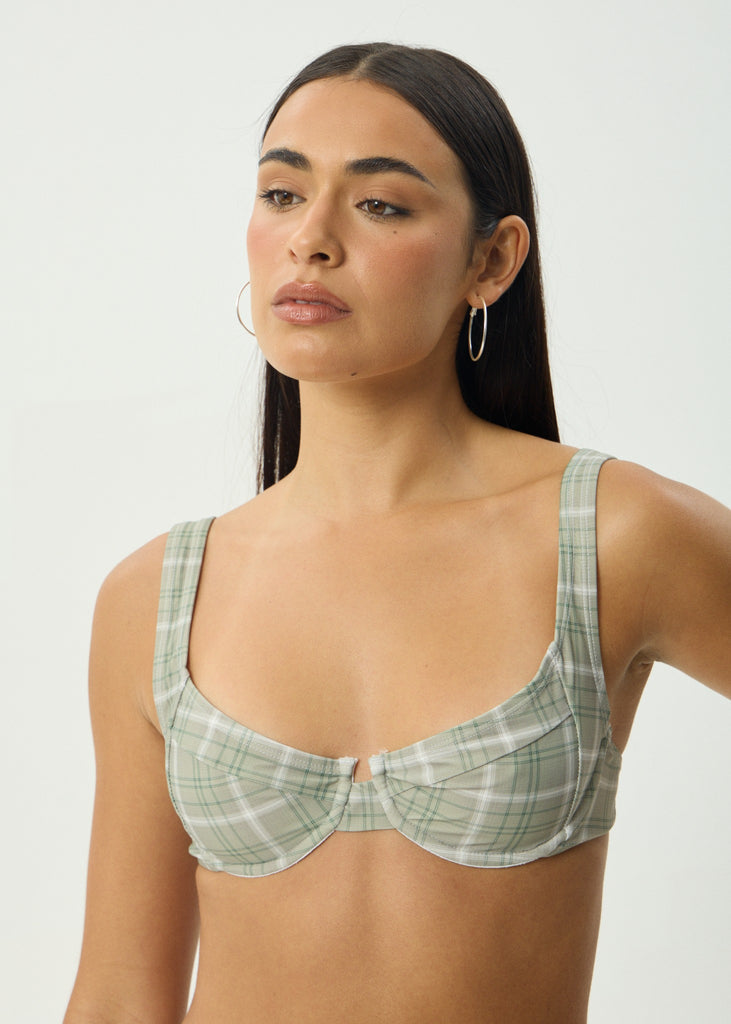 The 'Scout' bikini top is designed with adjustable shoulder straps, silver rear clasp and underwire cups for enhanced support and shaping. Staying true to a classic design, with an updated custom check print, ensuring both comfort and support.