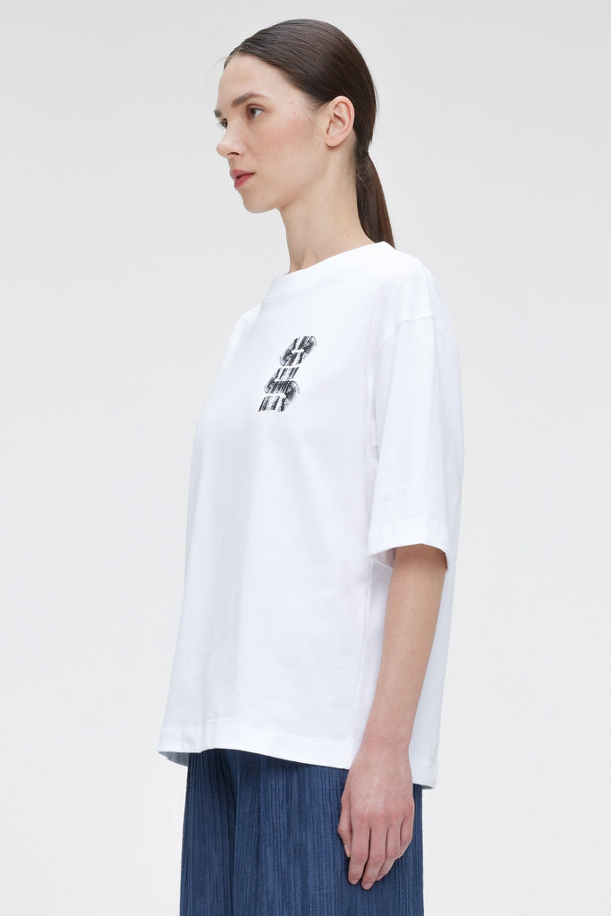 The Arca 01 t-shirt offers the perfect blend of comfort and contemporary style. Made in Portugal from 100% cotton, this oversized tee features a small printed logo for a minimal yet modern touch. With big sleeves that fall off the shoulder and reach the elbows, it creates a relaxed, effortless look. Jet is 177 cm tall and wearing a size M. – Boyfriend fit– 100% Cotton– Brush print graphic– Made in Portugal About Our Sister Built for a colorful and care-free world, we are a vibrant womenswear label with naturally preferred materials. Home of a creative studio in Antwerp, Belgium.
