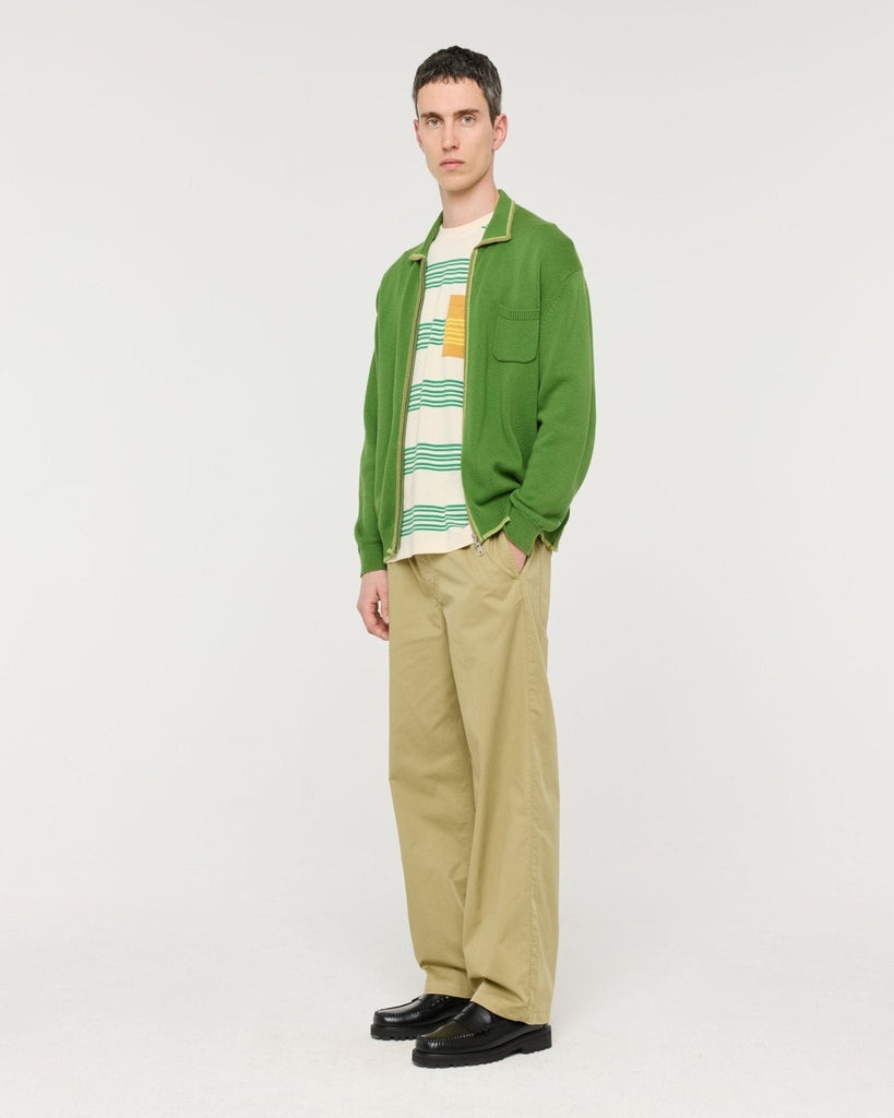 Made from 100% cotton, this zip-up knitwear offers both style and comfort. Featuring a collar, breast pocket, and unique details around the zip, it’s a versatile piece that adds a touch of refinement to your casual wardrobe. Perfect for layering or wearing on its own.