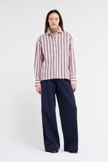 A relaxed button-down from Our Sister with bold vertical stripes, the Tomlin Shirt features dropped shoulders and a structured collar for a laid-back look that still makes a statement.