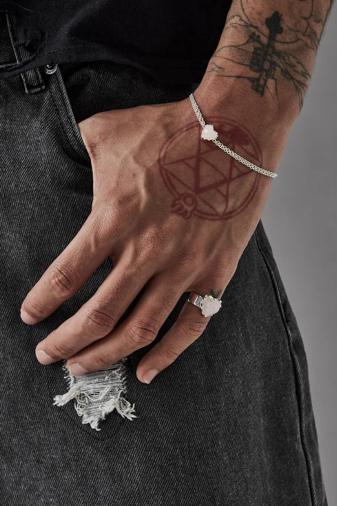 The Love Claw Ring is designed to be your special statement piece. This tough-yet-beautiful ring features a large, heart-shaped natural rose quartz stone, set on a wide solid sterling silver band. Each ring is adorned with a unique natural stone.