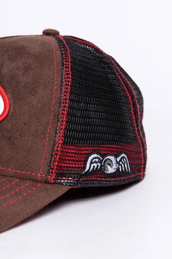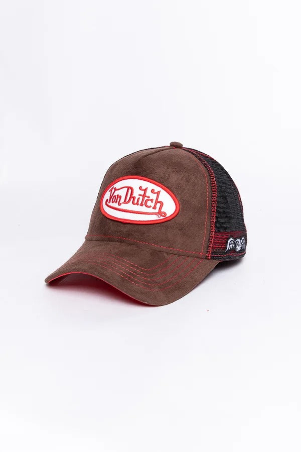 The Von Dutch logo is prominently displayed on the front of the cap, adding a touch of vintage-inspired flair. Whether you're running errands, heading out for a night on the town, or just looking to elevate your casual wardrobe, the Von Dutch Brown Suede Trucker Cap is the perfect choice.