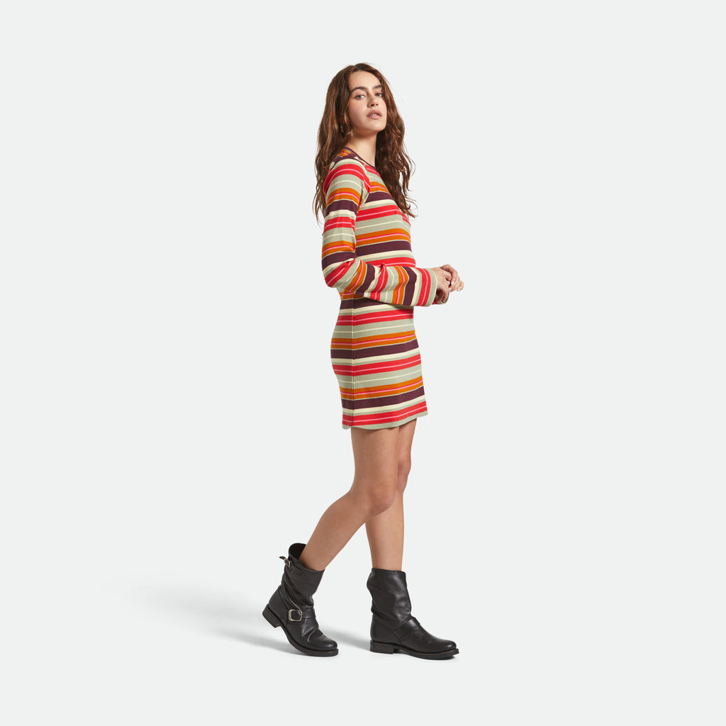 Effortlessly retro and endlessly wearable, the Brixton Dolly Long Sleeve Knit Dress brings vintage vibes with a modern twist. Designed with a slim fit and 33" HPS length, it features soft, stretchy cotton fabrics that move with you 200/260 GSM 2x1 rib in multi-stripe.