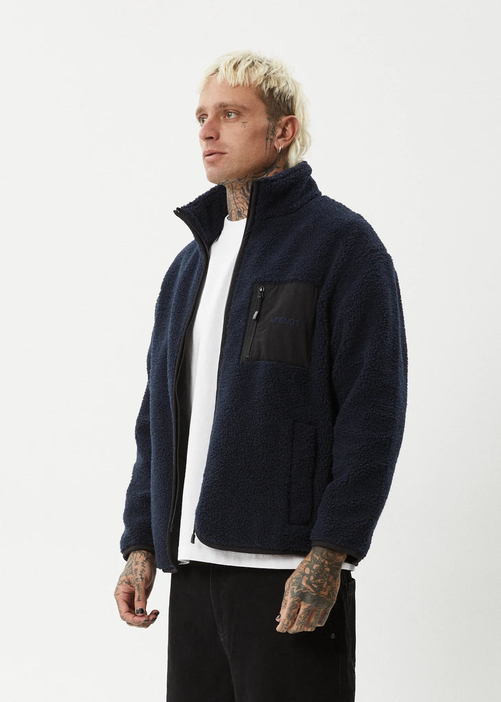 Afends Polarize Recycled Fleece Zip Up Jacket - Navy WAS $210 NOW