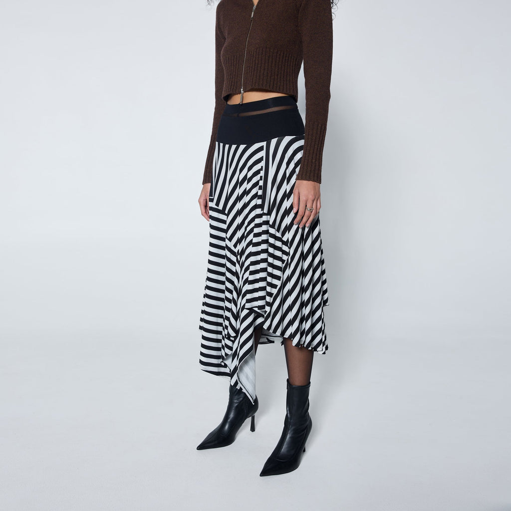 Handkerchief skirt with voluminous drape and asymmetric hem