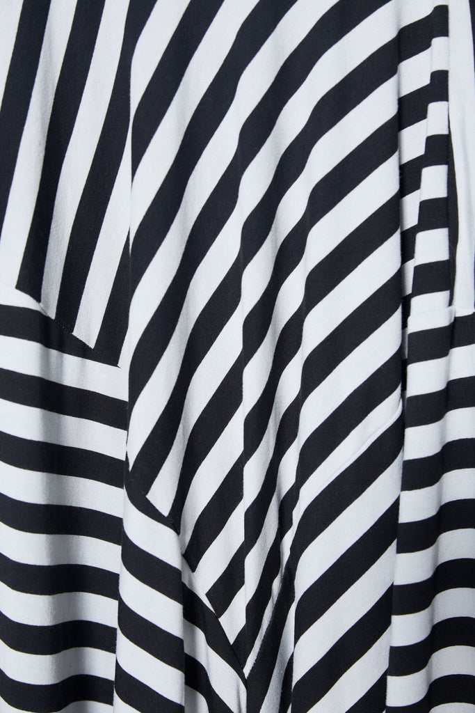Finished with bold, black and grey stripes