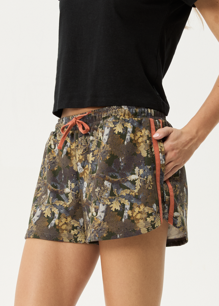 Afends are bringing back the real tree camo print 'Find Me' in this short, made to pair back with the matching jersey singlet. These shorts are designed with a mid-rise waist, curved hem and an elasticated waistband with a contrast outer drawcord. Finished with contrast flat binding down the side and side seam pockets.