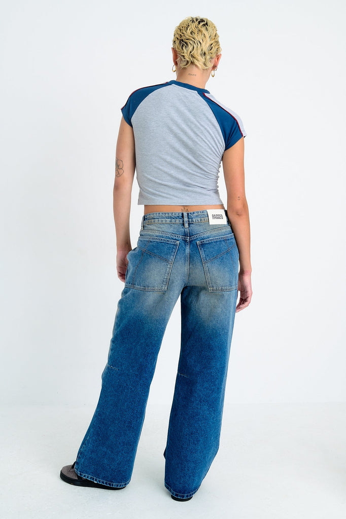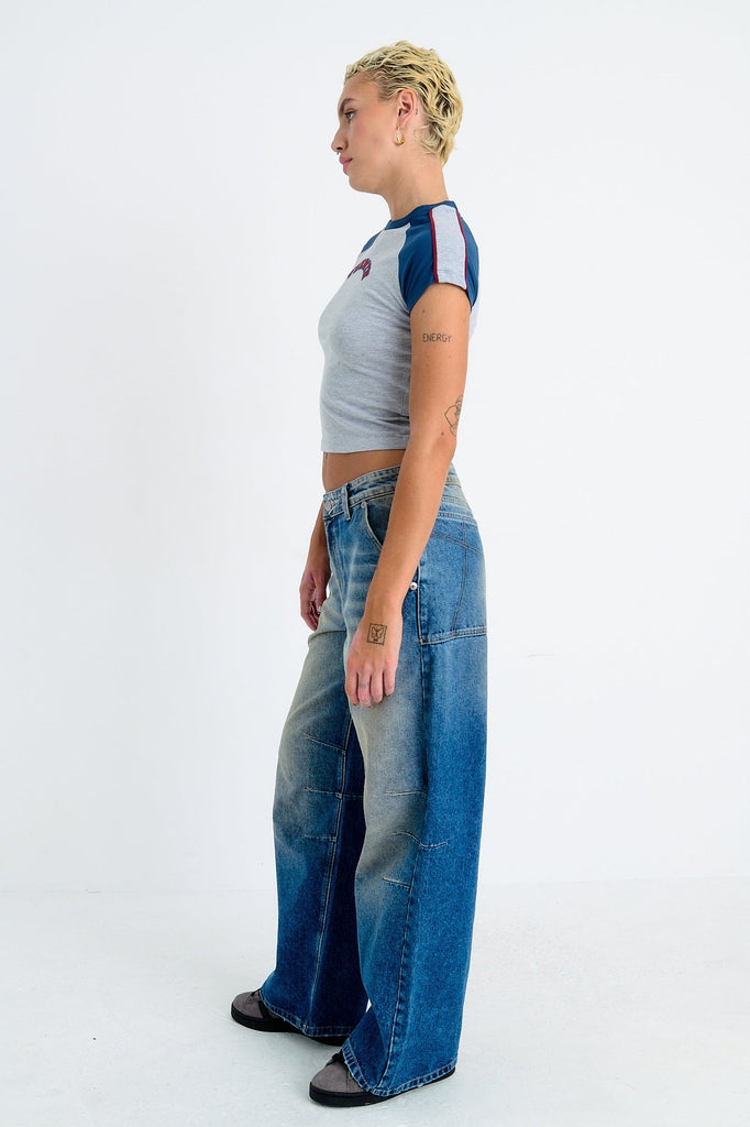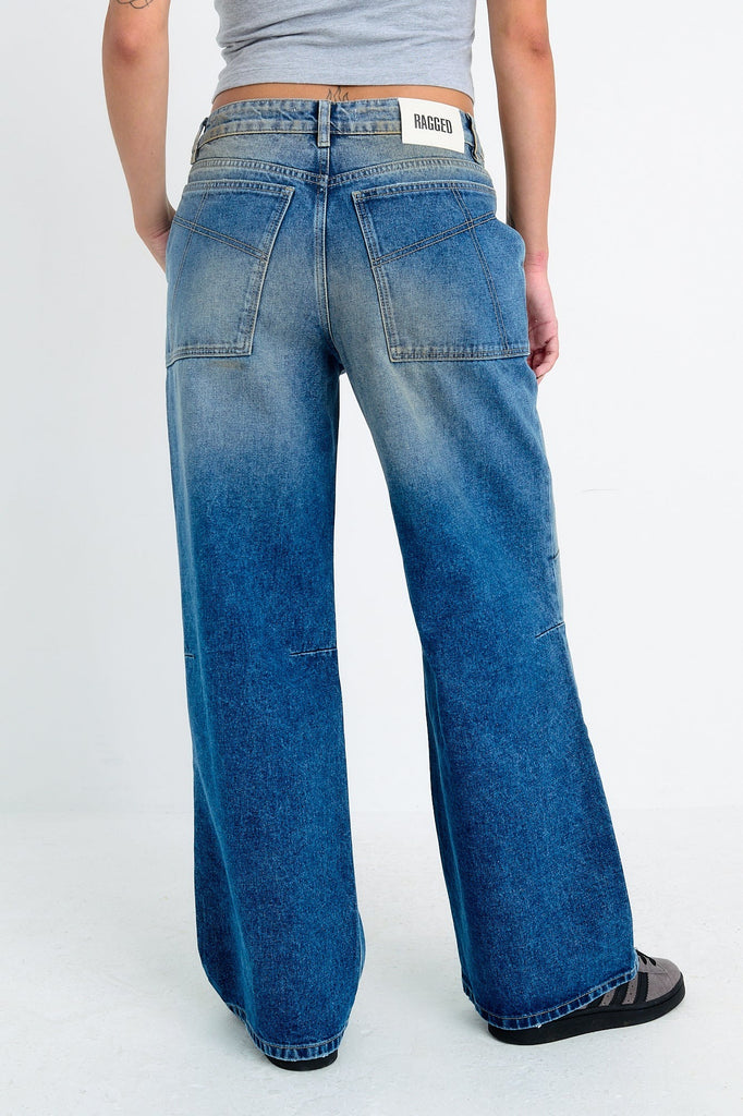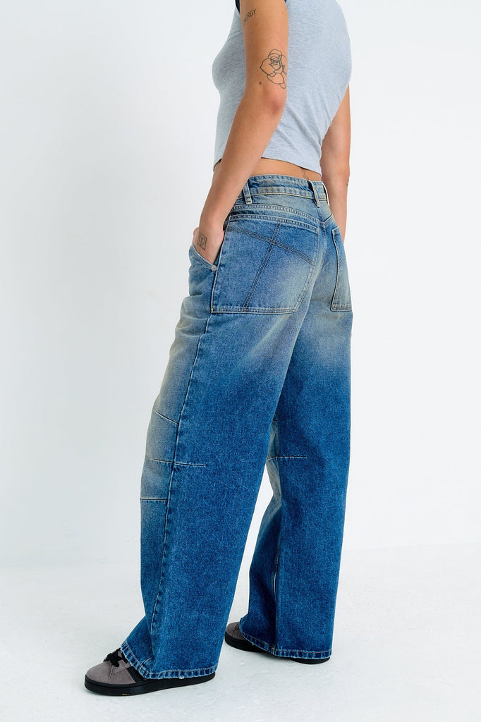 Dirty wash blue denim ultra baggy jeans