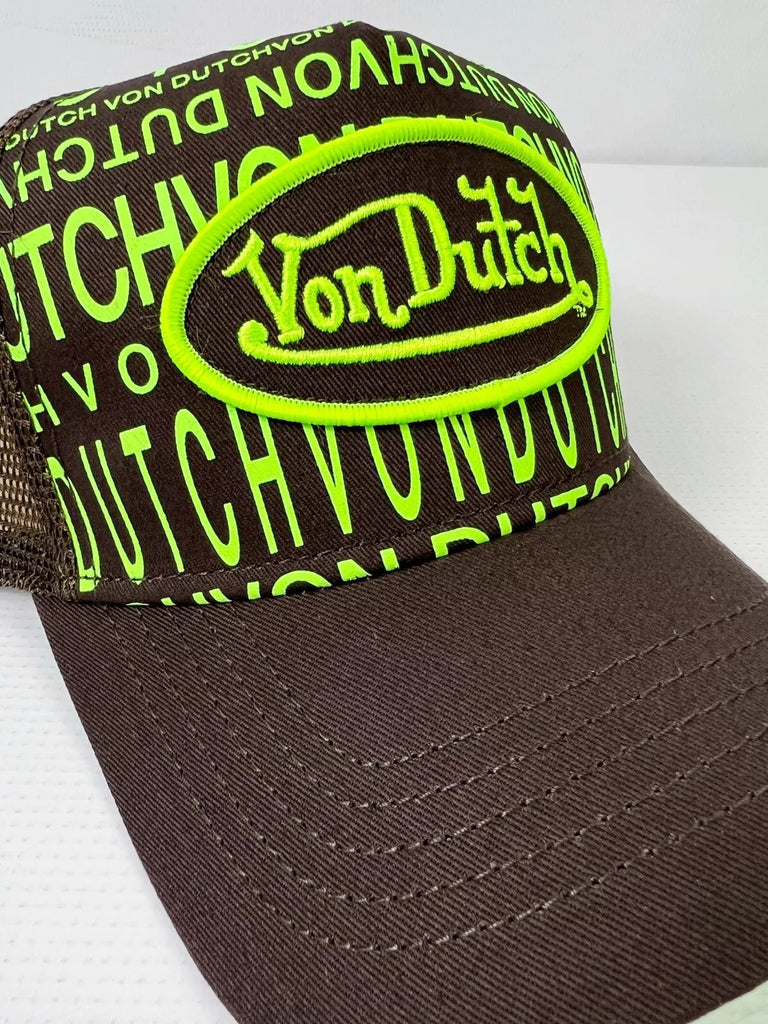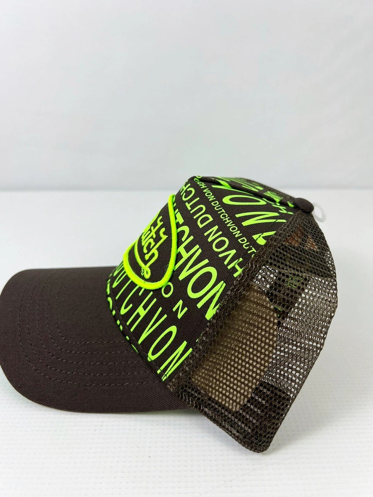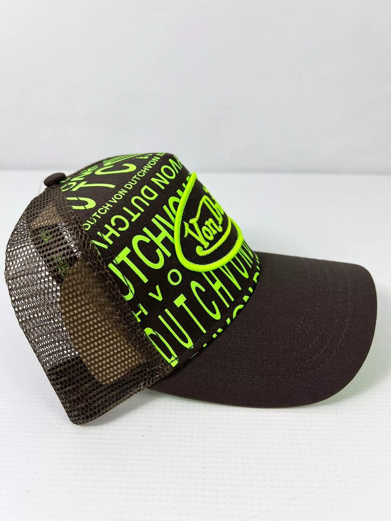 Explore the classic vibe of the Von Dutch Neon Yellow & Brown Trucker Hat, a perfect blend of style and comfort for any casual occasion. Featuring an iconic logo patch on a brown backdrop, this hat makes a bold statement while offering versatility with its one-size-fits-all design.